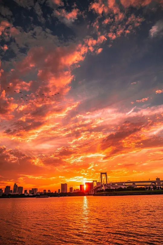 火烧云的出现往往在傍晚时分,那时太阳已经接近地平线,把云朵照得通红,犹如一团团烈火在燃烧。此时的云朵就像是大自然的霓裳,不断变换着色彩和形状,让人惊叹不已。