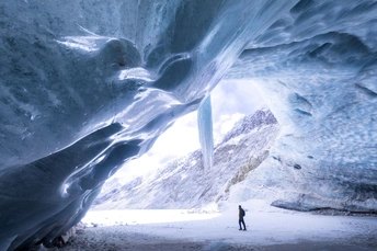 一个坍塌了一半仍然规模巨大的冰洞,让人震撼
