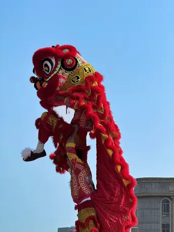 春节期间,汉口里举行新春庙会,舞狮者将狮子的形象展现的栩栩如生,给人带来了视觉上的享受! 大年初四拍摄于汉口里新春庙会 摄影器材:iPhone 15 Pro Max @米拍社长 @米拍 @米拍摄影学院
