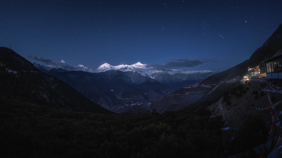 早晨六点到飞来寺,就已经有很多人了,都在等待梅里雪山的日照金山。月光洒在卡瓦格博上,隐约间还能看到几颗星星,于是拍下了月照银山的画面。@米拍 @米拍社长 @米拍编少
