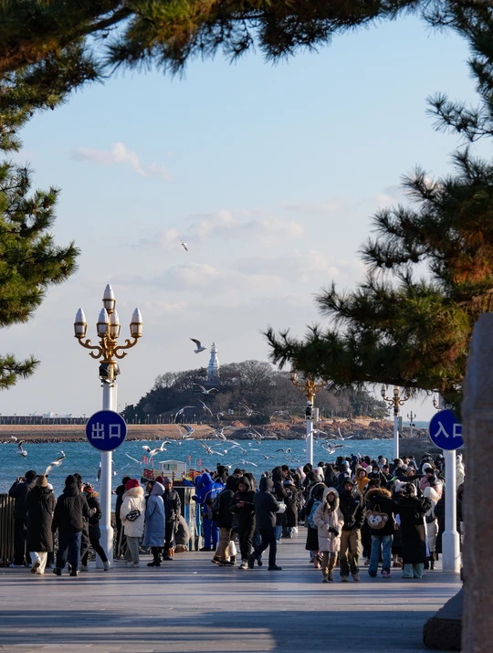 每年的十一月到次年三四月青岛栈桥附近都会出现成群结队从西伯利亚飞来的海鸥,吸引了众多市民和游客前来观赏。海鸥们在海面上自由翱翔,时而盘旋嬉戏,时而俯冲入水觅食,给栈桥增添了生机与活力。这些可爱的海鸥成为了中山路栈桥的一大亮点,吸引了众多摄影爱好者前来拍摄。