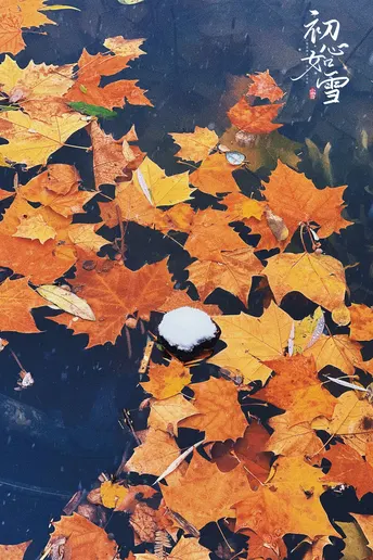 这是外面下着大雪时拍的,在家门口的湖面上,落叶与湖水的蓝色背景形成了对比,中间的雪和纷纷飘落的雪让照片氛围感十足,展现了自然美并唤起了季节更迭的联想。中间的那团雪就像人的心脏一样,所以取名初心如雪。