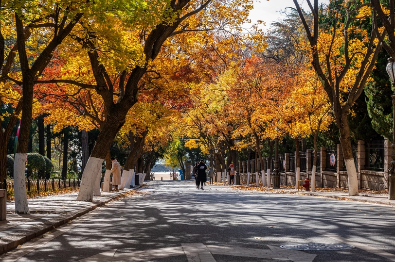 青岛八大关是非常适合散步的一片街道,11月底至12月初,街道两边的树叶都会变成金黄色,再加上此时为青岛旅游的淡季,人流较少,绝对是游玩的好去处。