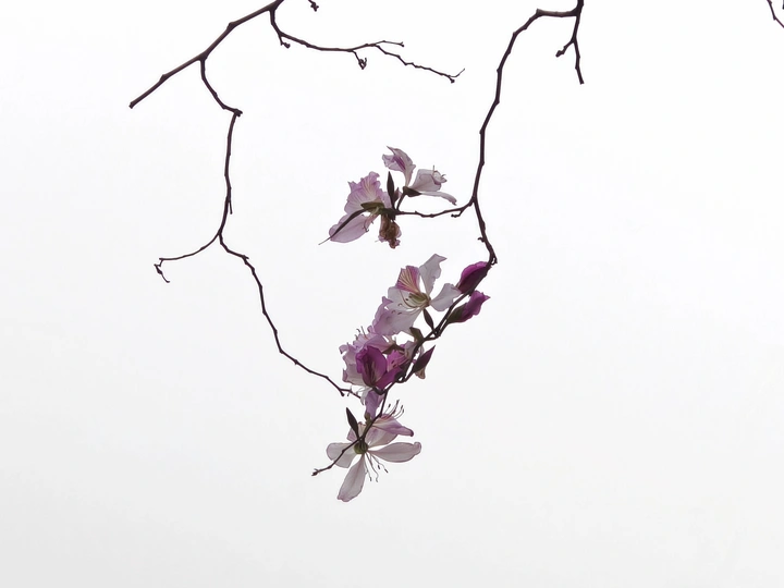 广州的春天雨濛濛,但树上枝条浪漫娇艳。