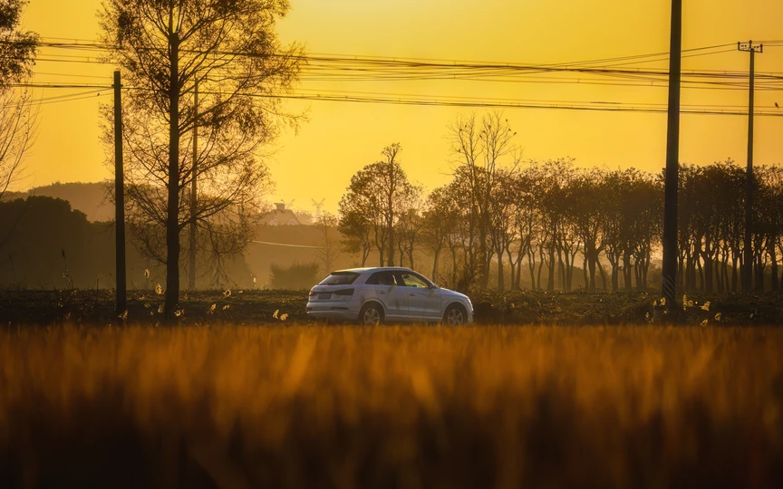 在佘山天马射电望远镜拍摄完后下山的路上,发现一片金黄的的稻谷,前去观望时回头看到自己的座驾在一片稻海中,旁边的电线杆像相框一样包裹了我的汽车,于是拍下了这一张