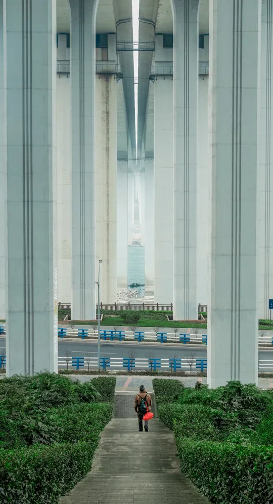 坐落于重庆巴南区的桥墩森林·重庆鱼洞长江大桥