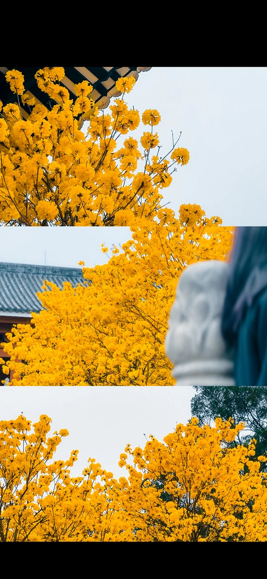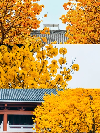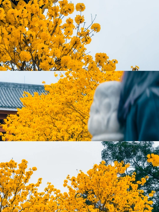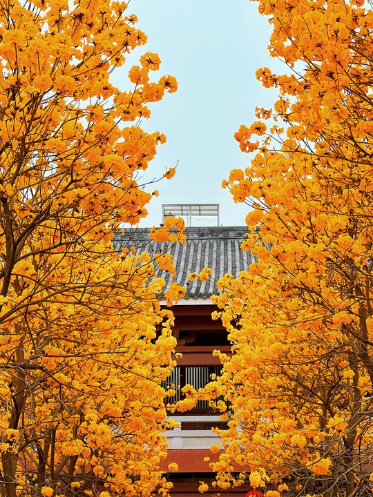 广州不愧是花城🌸🌸🌸 3月新增赏花好去处~广州光孝寺~赏黄花风铃木 当前是寺院的黄花风铃木盛开期,金黄色的小花~就算现在阴天但也非常耀眼夺目~除了有花拍,主要能拍到花与中式建筑,屋檐,石柱等的合影,非常有感觉~ 地铁站 西门口c出口400米左右 服装搭配 浅色衣服时间 8:30-16:30 门票 五元一人
