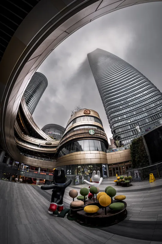 鎏金的白玉兰广场,在鱼眼镜头下张力十足