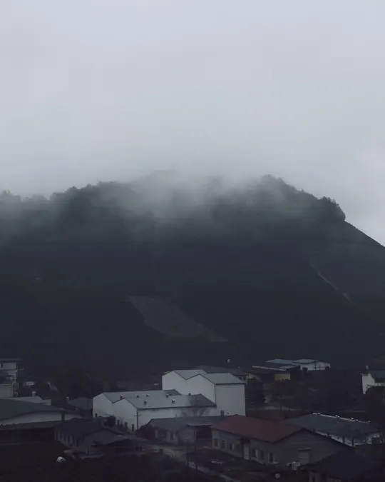 烟雾缭绕山间绕,山下小屋静悄悄。 白色屋宇立中央,宛如仙居落凡尘。 此景如画难描尽,令人心醉神自飘。 愿得长居此仙境,忘却尘世纷扰忧。