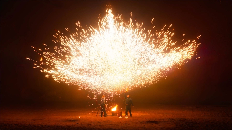 千里赴开封,只为打铁花 🌸千里迢迢,赴一场打铁花的盛宴。不为别的,只为捕捉那一瞬间的美丽。 值得! Sony FX30 Sigma 18-50 F2.8 DC DN #开封打铁花 #打铁花 #中国传统 #文化