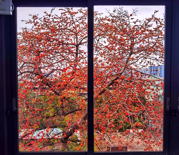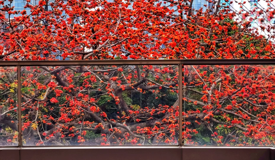 在广州,春节过后的一段时间,是木棉花盛放的日子,鲜红夺目,每个角落都容易找到它的踪迹。。。