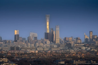 中国尊和故宫,分别是北京现代和古代最为宏伟、最具代表性的建筑。这个视角将二者都纳入镜头中,可谓十分独特。