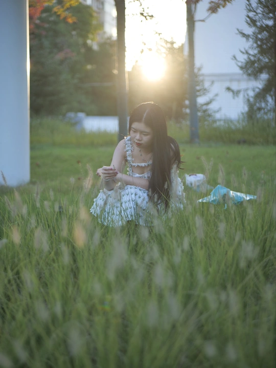 这组照片是夏末时节在小寨公园拍的。由于建筑物遮挡了落日,只找到一小块有阳光的地方,不到二十分钟就没有阳光了,好可惜。不过还是很出片,蛮夏天的一组