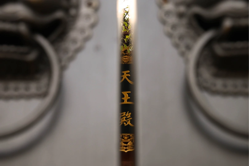 不幸过点,寺门已关,幸的是透过门缝看到了天王殿,试了下,居然还能对焦,记之。