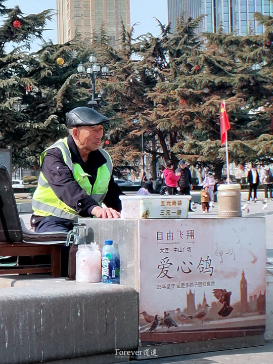 在大连,每天都在上演故事与浪漫。 成群的鸽子在这里飞翔,它们成为了大连中山广场的一道亮丽风景。而在这群鸽子的背后,有一位神秘的大爷,他用自己的爱心,守护着这些可爱的鸽子。 今天路过中山广场喂了喂鸽子,大爷还是那个大爷,之前就了解一点大爷的故事,今天在旁边听着交流知道了更多,大爷为了照顾这么多鸽子不被坏人偷跑和下毒,仅睡在4平方米的地下室,一睡就是20多年!大爷一边笑着一边跟我们讲故事,往下瞅了瞅大爷睡得地方,无法想象大爷这么多年怎么坚持过来的,这份精神让人深深的动容。大爷每天五点多就起来给广场进行打扫清理,这一扫就是无数个春夏秋冬。大爷还给旁边孩子看了他住的地下室,说给他提供了住房,但是他还是想住在地下室,有监控方便看着鸽子。旁边人问大爷能赚钱不,大爷说,由于鸽子总丢失或者被下毒,赚的钱就用来补充鸽子,大多时候是买烧烤店即将要被烧烤的鸽子。大爷的5元2袋鸽粮真心不贵,大爷还很有礼貌,喂完的袋子大爷说给他就行还谢谢我们。中山广场的鸽子很可爱一点也不怕人,喂食在手上落的多只鸽子甚至还为了争食互拍起来哈哈哈。浪漫之都大连真的不是说说而已,同时也是一个动物友好的城市。