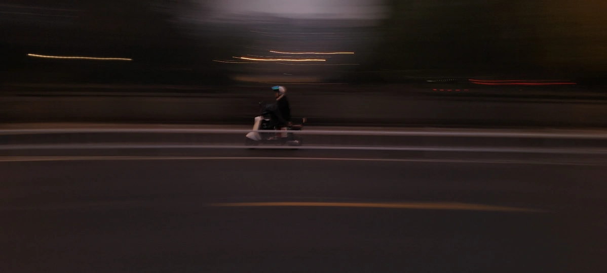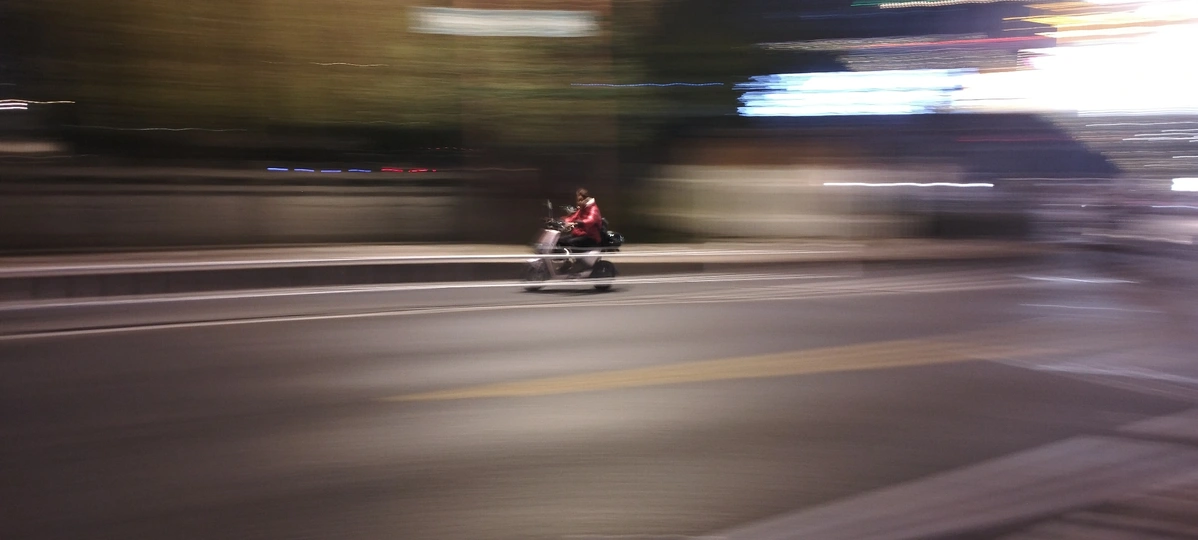 专业模式下ISO100,快门速度0.5s,傍晚摇拍的结果。 摇拍的原理是物理上的相对运动,由于在曝光的瞬间,运动主体相对于运动的相机是静止的,而静止的背景相对于运动的相机却是移动的,这样就使得画面上的运动主体比较清晰而背景则是看似流动的模糊线条,从而形成强烈的动态效果。