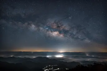 相机:尼康z7 镜头:适马14-24 Art 银河20张堆栈,地景30张堆栈 银河之下的万重山,拍摄于下雨后天晴的夜晚,山间还有云海。