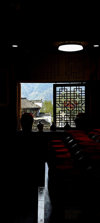 婺源篁岭去看晒秋,发现开在天街上的一家酒店,店铺就是古朴农村风格那种很有特色的农家乐。外面的阳光,里面柔和的灯光洒在瓦罐上场景很温馨,吸引了我的眼球,驻足拍照,闻着它的酒香,喜欢它的光影。