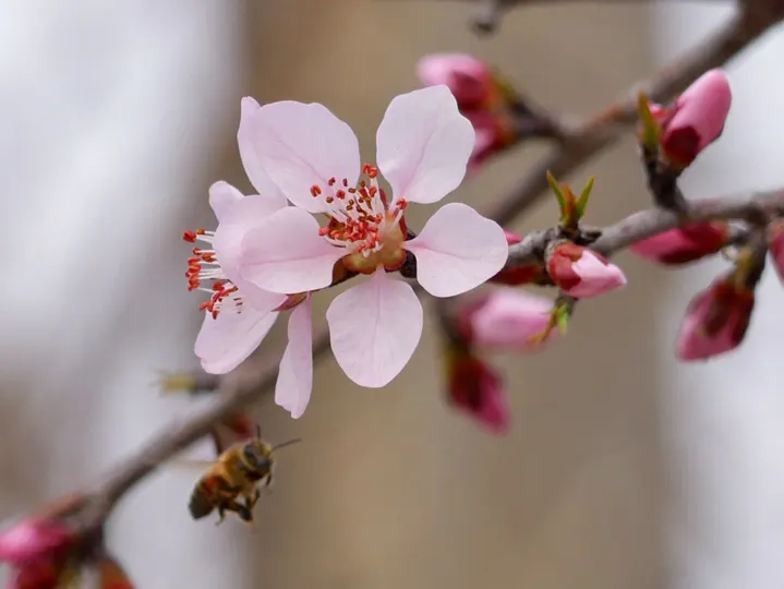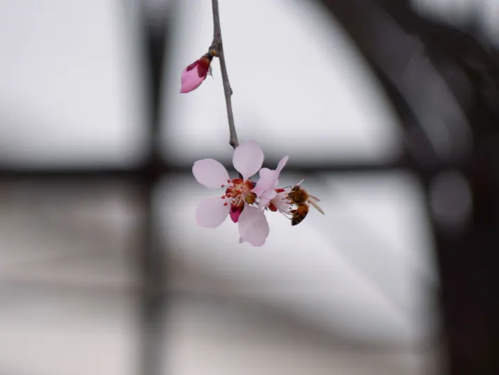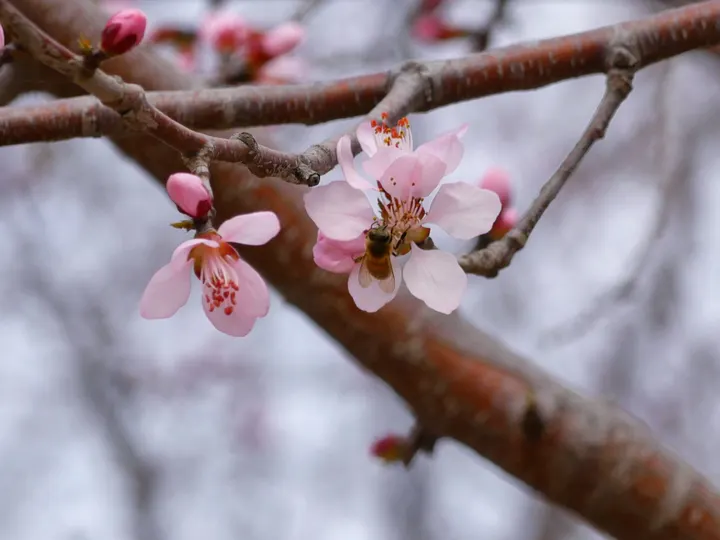 在路边闲逛时候偶然发现了一棵正在盛开的桃树,可爱的“小花匠”还在枝头辛勤劳作😊顺手拍了几张。 清风徐徐吹来,空气里裹挟着淡淡的花香,不禁让人想到“桃花依旧笑春风”。