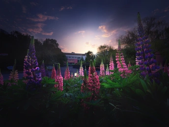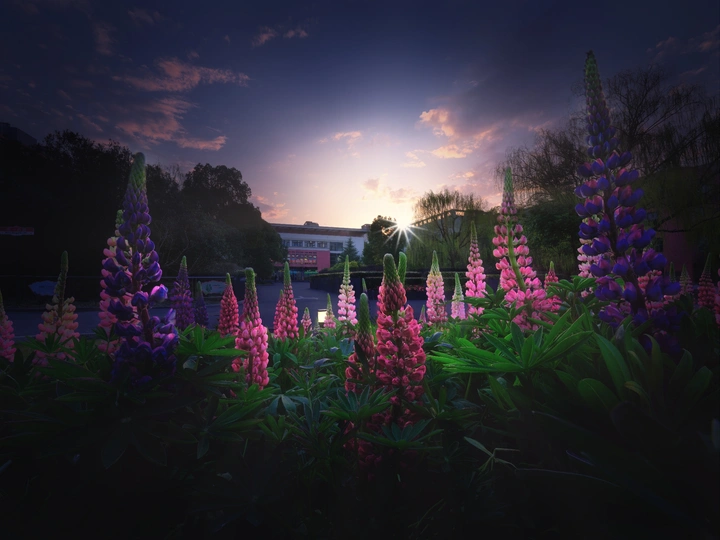 几天前,放学后在校园中闲庭信步,偶然间看见鲁冰花盛开之景,不禁心中感叹其美丽动人。彼时我便暗想,定要寻找时间将其倩影留存。今天,携体验的富士gfx100s中画幅相机,用 20 张景深堆叠与 1 张曝光合成之技巧,在夕阳余晖的映衬下,成功捕捉到了鲁冰花与校园的最美瞬间。毫无疑问,这是我拍摄过的最美的校园风景。
