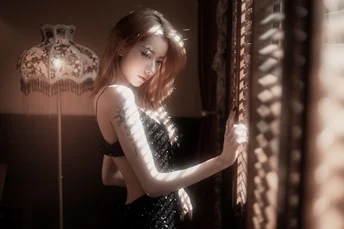 百叶窗透过的光,其特点主要体现在光线的层次感和线条感上。阳光透过百叶窗的缝隙,形成一道道明亮的光束,这些光束在空间中交织、层叠,形成了一种独特的光影效果。这种光效不仅富有层次感,而且能够给画面带来强烈的线条感,尘埃在光线的作用下使得画面更具立体感和空间感。