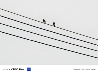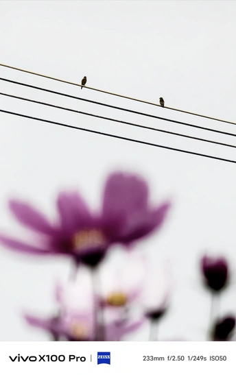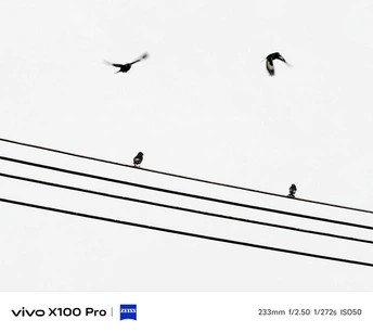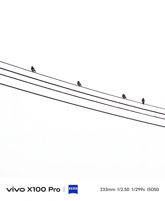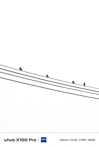 我们可以看到几只小鸟停在电线杆上。它们的身体呈现出深色和浅色的斑驳,与天空的白色形成了鲜明的对比。电线杆上的电线在风中摇曳,似乎在诉说着它们的故事。这些小鸟可能是在寻找食物或者休息,它们在这个安静的地方找到了一个舒适的栖息地。整个场景给人一种宁静和和谐的感觉,仿佛时间在这里静止了。