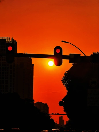 下班步行回家路上,走在一条东西走向的道路上,遇上夕阳西斜,随手拍下来。
