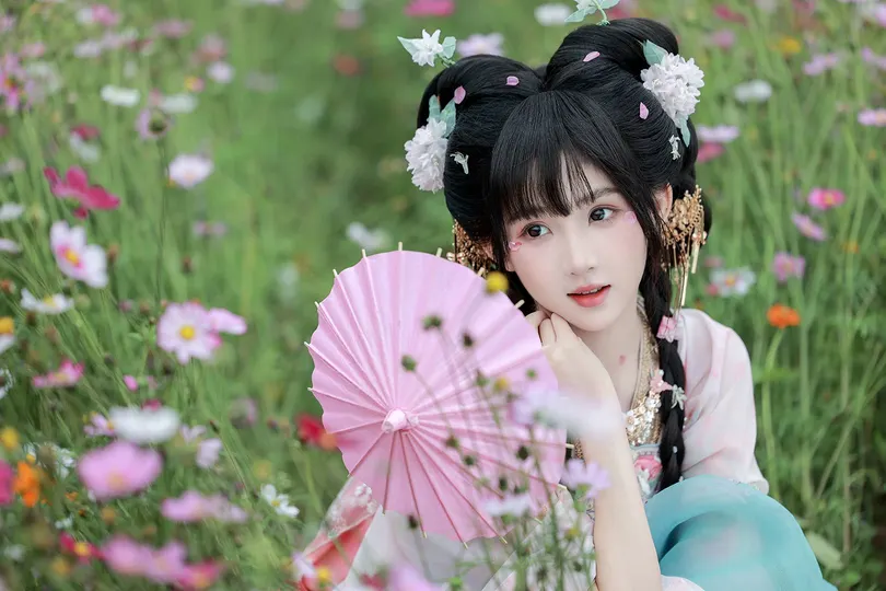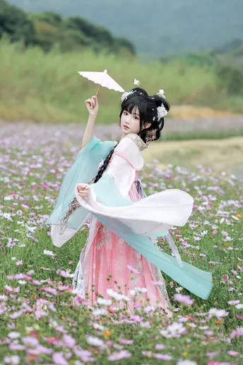 黄山鲁森林公园格桑花海拍摄的一组古风人像作品