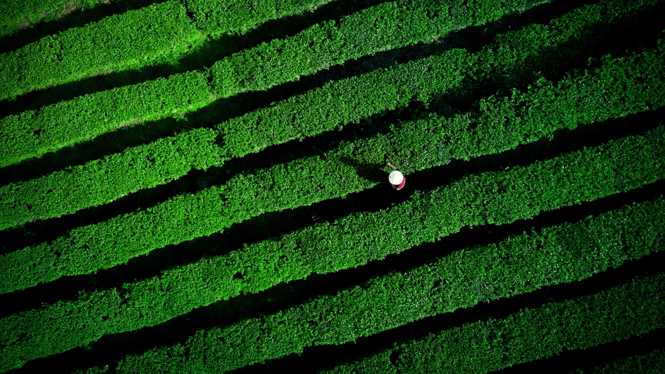 拍摄于2024年3月23日 拍摄地古蔺县马嘶乡茶园基地 下午4点拍摄,图中的采茶人是茶园工作人员,当天海举办了隆重的茶文化节和篝火晚会。