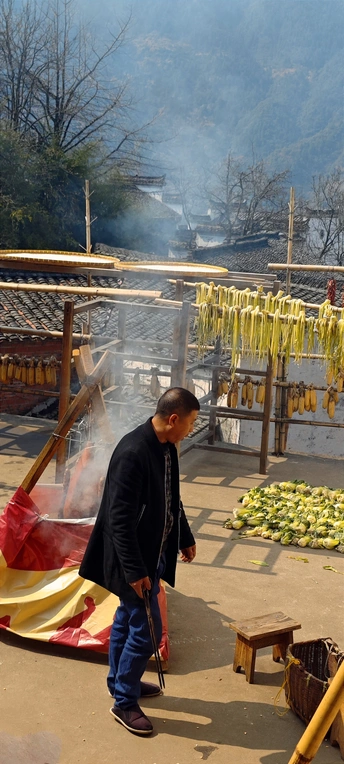 在江西婺源的古老小镇,烟火气息弥漫在每一个角落。居民们手拿烧火的铁夹,精心烤制着熏火腿,香气四溢。一旁,金黄的玉米和翠绿的白菜在阳光下晾晒,一派丰收的景象。 烧火棍的火星跳跃,与火腿的香气交织,构成了一幅独特的乡村画面。这里的生活简单而充实,人们用勤劳的双手,创造着属于自己的美食和幸福。 走进婺源,仿佛走进了一个烟火气息的世界。你可以感受到大自然的馈赠,品味到最纯正的乡村味道。在这片美丽的土地上,时间仿佛静止,让人忘却一切烦恼,只想沉醉在这浓浓的烟火气息中。 让我们一起走进江西婺源,感受这份独特的烟火气息,体验最真实的乡村生活。