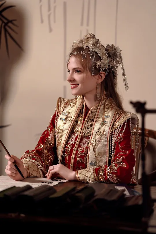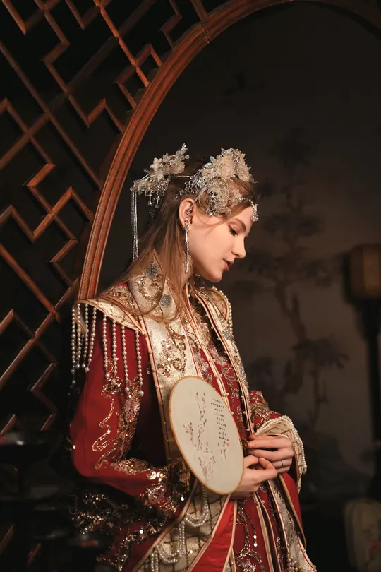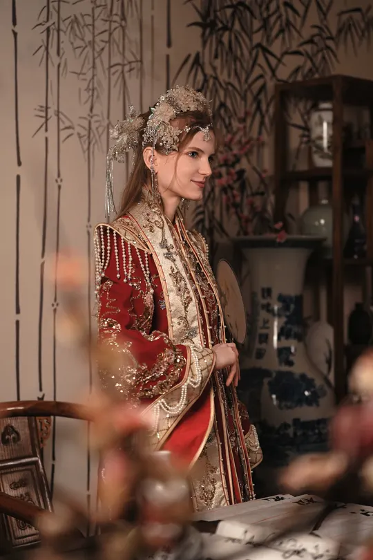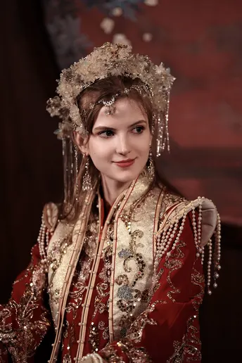 外国妞穿了中式秀禾服我感觉其实还挺惊艳的,传统文化中个人还比较喜欢红色。红色端庄,沉稳,有一种高贵的气质