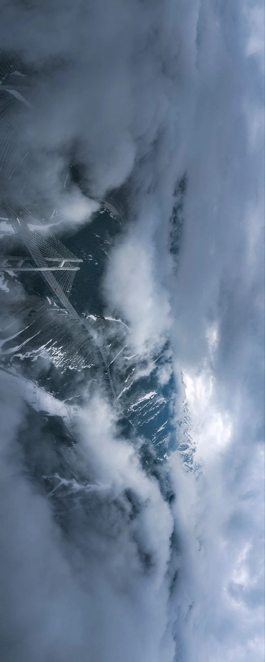 被云雾环绕的果子沟大桥 远处的雪山若隐若现