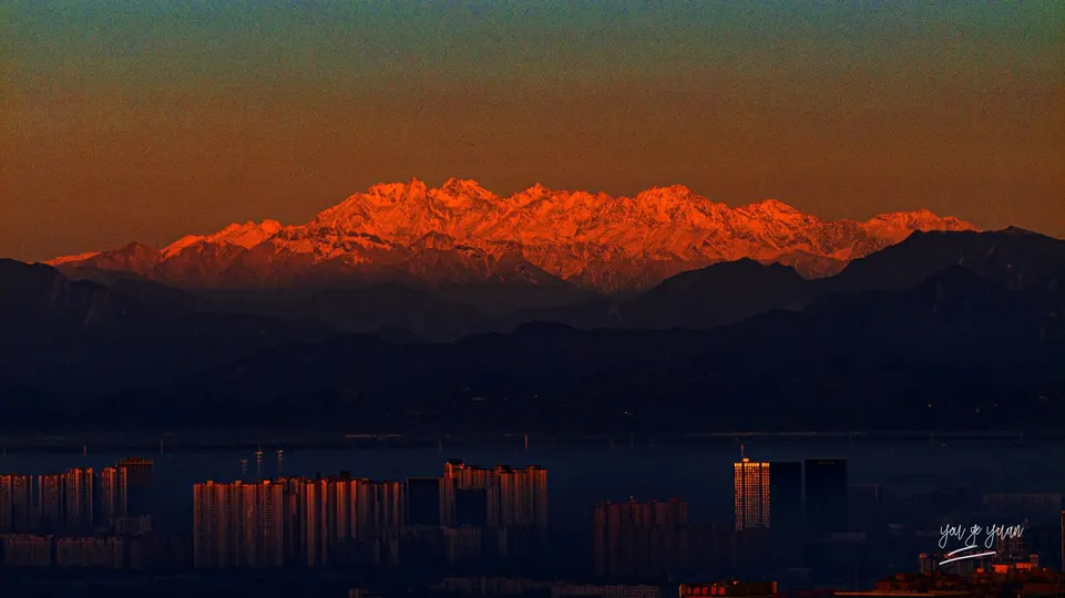 3.28又是推开门见雪山的日子 今年三月份 共记三次推开窗就能看见雪山 早起的人看见日照金山是奖励给早起的人 3.25 3.28 3.29天气都很好 郫都区拍摄.