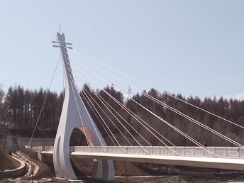 一架奇巧绝伦,绚丽多姿的巨型琵琶桥,依恋着栾架山,凌空东辽河上,仿佛琵笆曲声响在耳旁,如诗如画勾勒出一幅美丽的画卷。