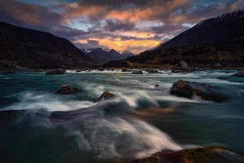 索松村下的雅鲁藏布江,对面的山峰为海拔7782的南迦巴瓦峰,时常隐于雾中,也称羞女峰。拍摄时我带上了防水裤并下到水里,把脚架防止下去,进行了拍摄。 设别:Z72+14-30 滤镜:卡色ND64+0.9渐变 参数:快门1s、ISO640、F8 其他:黑琵、防水裤
