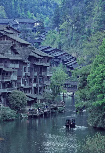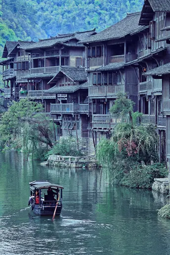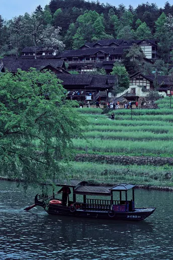 静水映古楼,河畔木舟悠。 石径通幽处,叶影舞风柔。 桨声惊鱼跃,鸟鸣入心头。 此间寻雅意,美景不胜收。
