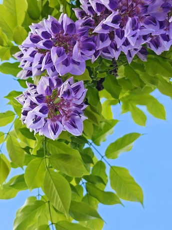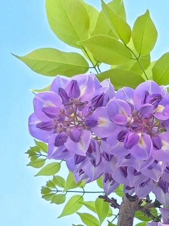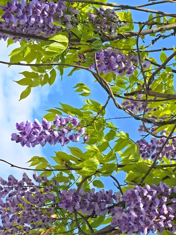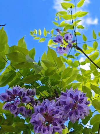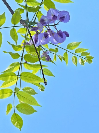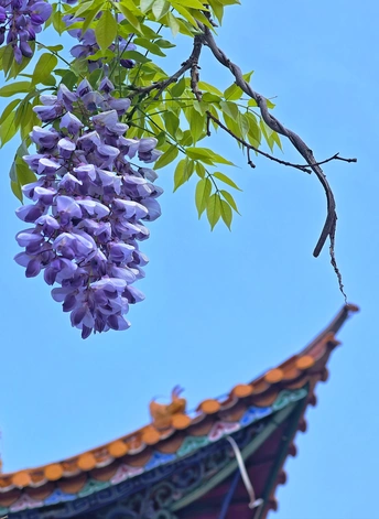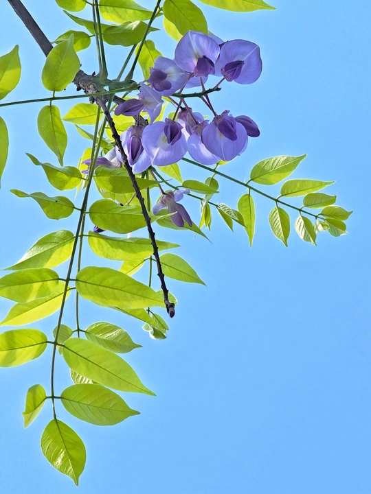 恍惚间,我以为夏天到了。原来的好几片紫藤,都不见了踪影,只剩这里,每年都在开着。并不茂盛,但那串紫,还是来了。