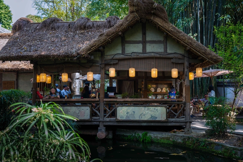 风和日丽时,情系草堂处。 自在园中走,古迹心中留。