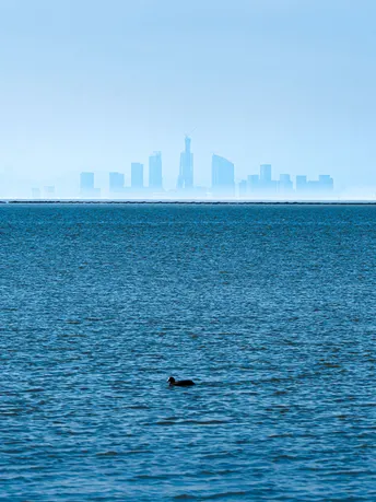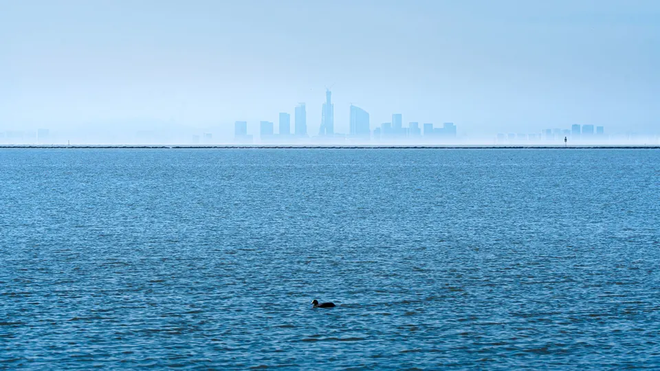 清明节假与朋友沿太湖自驾,清晨从西山岛往外开,转过某处弯道,突然看见远处鳞次栉比的天际线,好像海市蜃楼,那刹真的非常震撼。