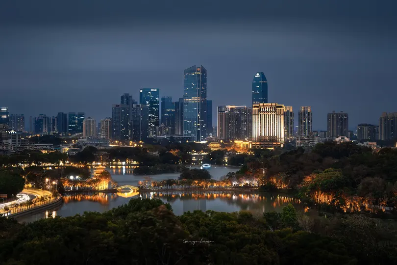 惠州西湖与江北CBD同框视角夜景