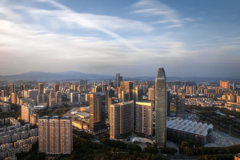 落日时顺光方向的惠州CBD,惠州难得的通透天。