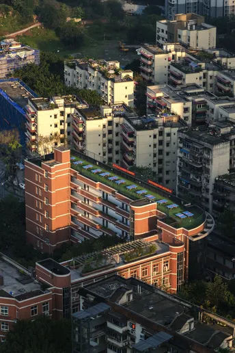 爬上楼顶看到这有趣的场景,顺手按下快门