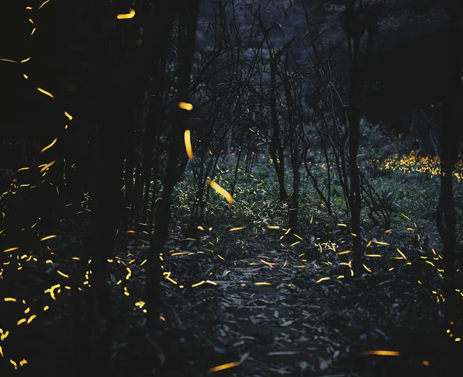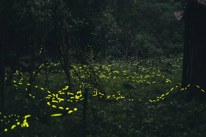 眉山青神又到了赏萤火虫的季节了 从中岩寺进去,后面一整片森林都是萤火虫的栖息地 晚上7点40左右萤火虫陆续开始出来活动,星星点点非常的美。 “银烛秋光冷画屏,轻罗小扇扑流萤”,这些小精灵完全可以治愈内心 拍摄的话,要带三脚架才能拍出来,不过再好的器材都无法还原双眼看到的美