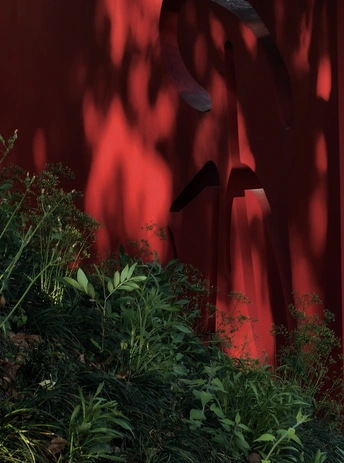 夕阳光打在红色宣传栏上,如同绿植上燃烧的火。喜欢这样动感的安静。