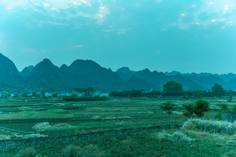 看太多的渲染和修图,还原真实春收后的景象才是真滴! 四月的万佛寺一片祥和! 万峰林有着秋收后的田园景象,很难想象生机盎然的四月会有一副秋收盛景! 下个月的五月份又将是水田稻谷种植的季节,即将的雨季到来! 期待雨季的到来