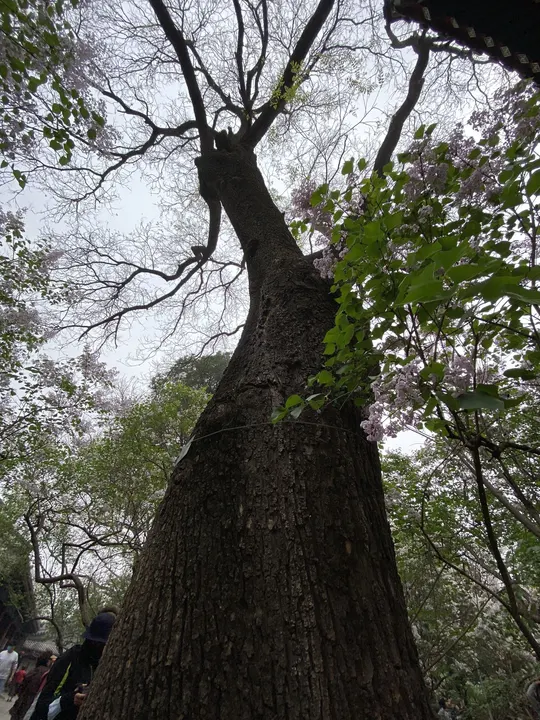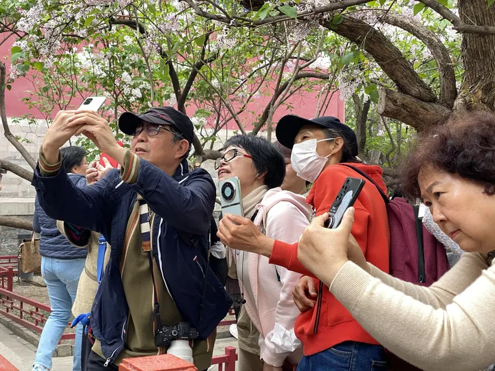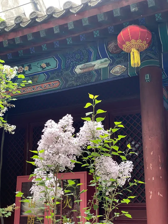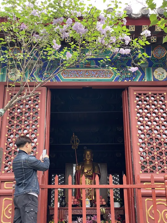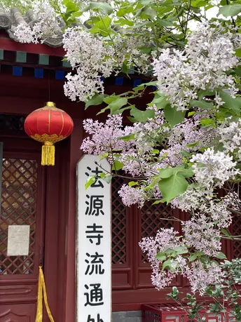 法源寺的丁香花素有香雪海之称。花开时节满院香气扑鼻。也吸引了众多摄影师前来拍照。趁着休息日法源寺走走。 iPhone 11 Pro 拍摄。 丁香一般指紫丁香。紫丁香(Syringa oblata Lindl.)是木樨科丁香属植物;小枝、花序轴、花梗、苞片、花萼、幼叶两面及叶柄均密被腺毛;叶革质或厚纸质,卵圆形或肾形,先端短凸尖或长渐尖,基部心形、平截或宽楔形;圆锥花序直立,由侧芽抽生;花冠紫色,花冠筒圆柱形,果卵圆形或长椭圆形;花期4-5月,果期6-10月。高濂在《草花谱》中提到:“紫丁香花木本,花微细小丁,香而瓣柔,色紫,故名紫丁香。”