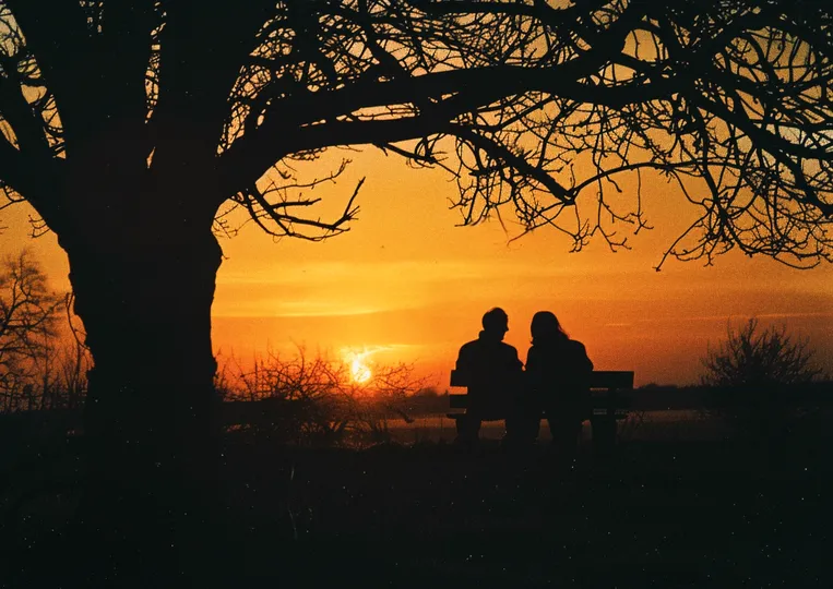ai作品 黄昏,携手并肩欣赏那晚霞夕阳,享受那份宁静那份温馨时光……