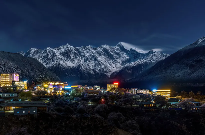 桃花节白天的南迦巴瓦峰没有看到,晚上看到了全景