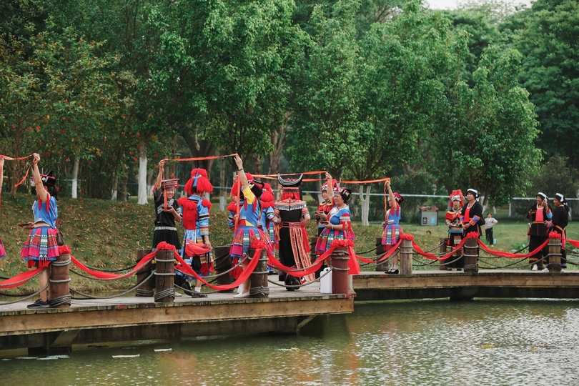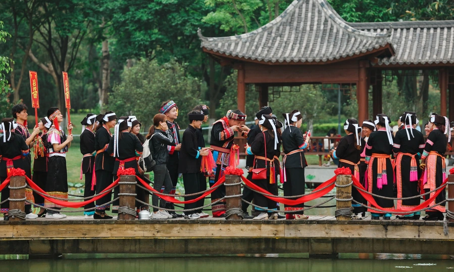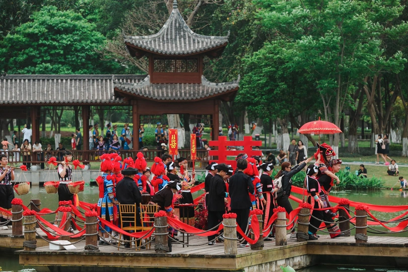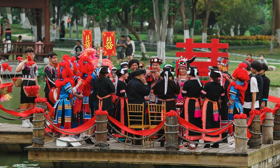 在百色半岛公园拍摄的民俗婚礼秀