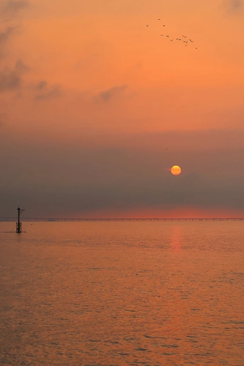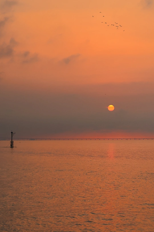 飞鸟与落日,老人与海,或许等一艘船出现在画面中才是最好,但落日不等,飞鸟也不等。